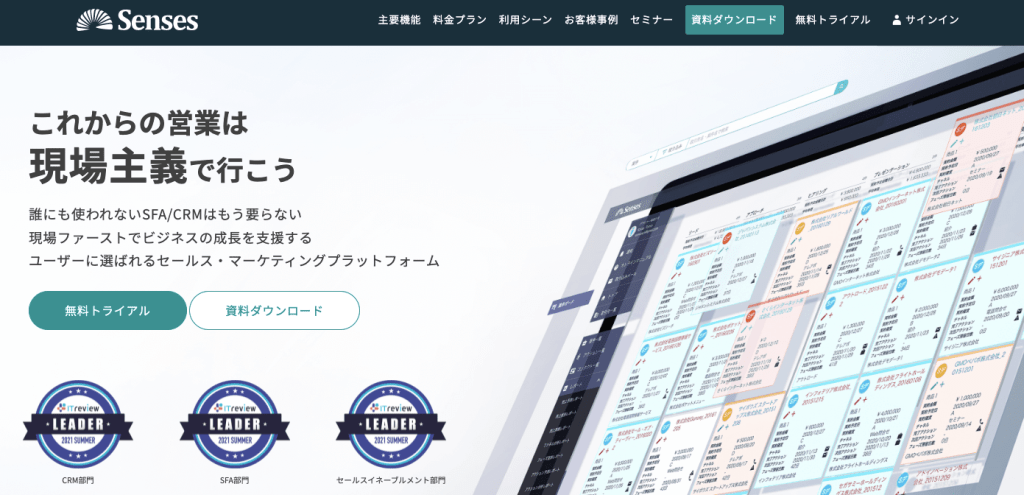 「Senses」は、ドラッグ&ドロップの直感的な操作で案件管理できるCRM/SFAツールです。Sensesの導入後15ヶ月での平均売上成長率は39%、営業の管理にかかる時間を30%削減するなどの実績があり、導入した企業のサービス利用継続率は98%を誇ります(2018年8月実績)。