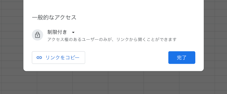 スプレッドシートのリンクを知っている人全員と共有したい場合は「制限付き」の横にある▼ボタンをクリックします。