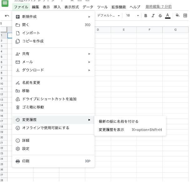 変更履歴も自動保存されるので、前のバージョンの状態を確認することができます。変更履歴からデータを復元することも可能です。