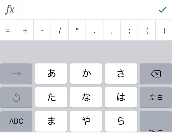 スマートフォンでのスプレッドシートのセルを編集する場合、編集対象のセルをダブルタップし、データを入力します。編集が完了したら、完了アイコンであるレ点をタップします。