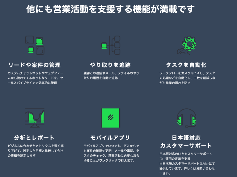 CRM/SFAツールであるpipedriveは、リードや案件の管理、顧客とのやりとりの追跡、タスクの自動化、分析とレポート機能など、営業活動を支援するための機能を数多く搭載しています。パイプライン管理で進捗を可視化するため、今のステータスをひと目で確認しやすいです。