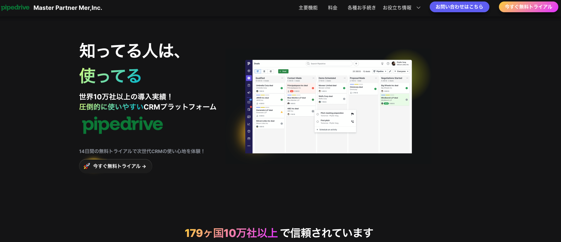 営業活動の最適化や成約率の向上を目指しているのであれば、Pipedriveの活用をおすすめします。営業業務の効率化により商談に集中でき、営業レベルの底上げのサポートを期待できます。