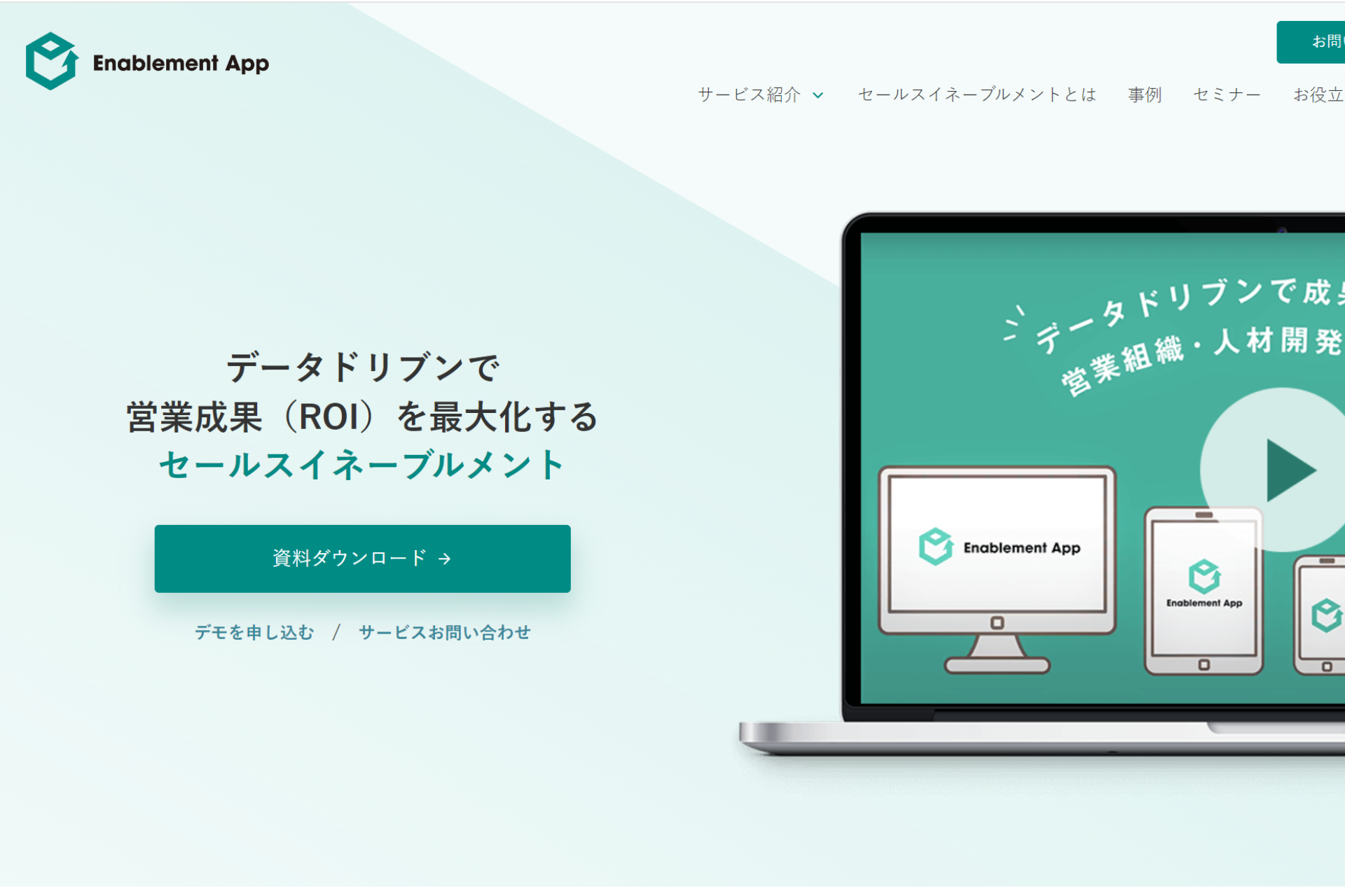 Enablement Appとは、実践で得られた情報をもとに営業成果の最大化を狙えるツールです。営業成果や育成のデータが可視化されることで、営業人材の成長を効果的に進められるため、営業成果のバラツキを解消し、属人性のない組織体制の構築を狙えます。